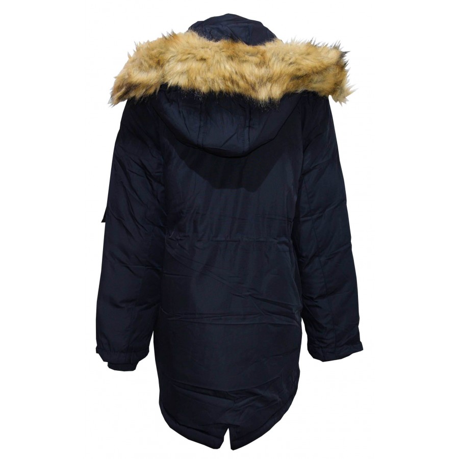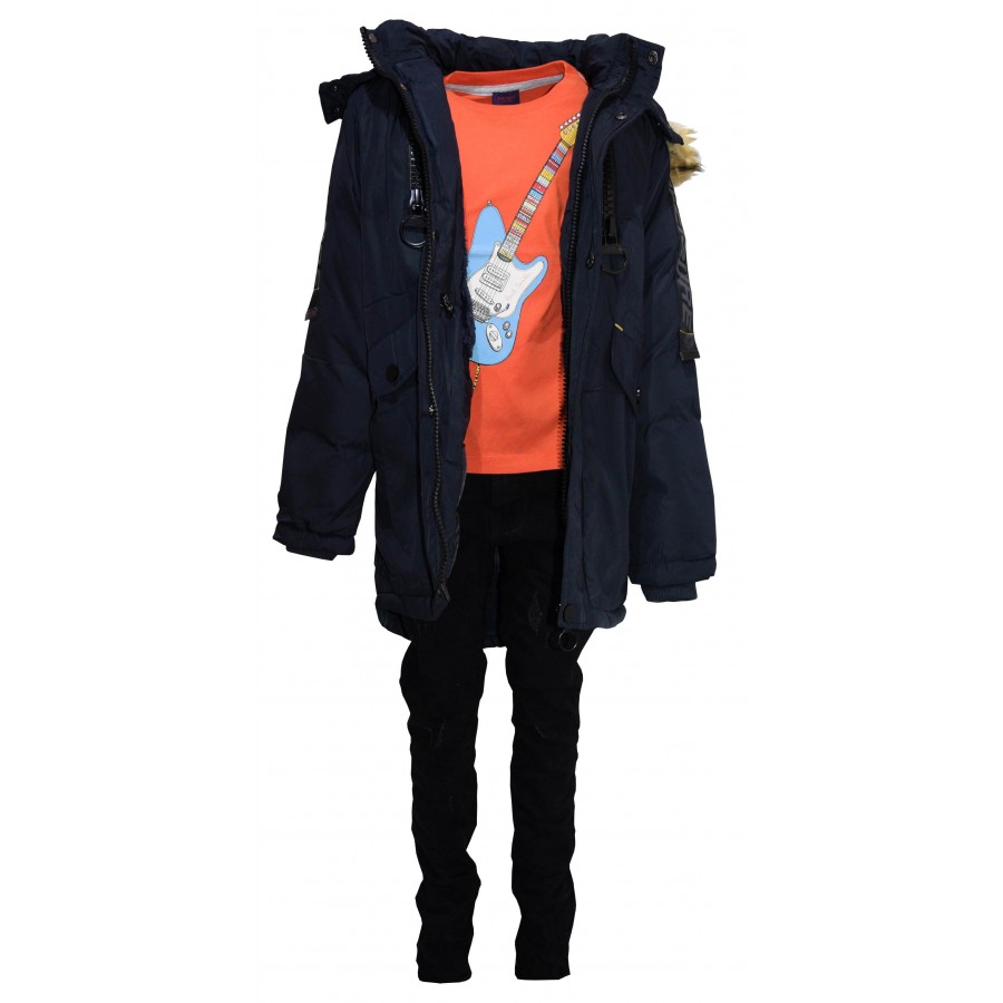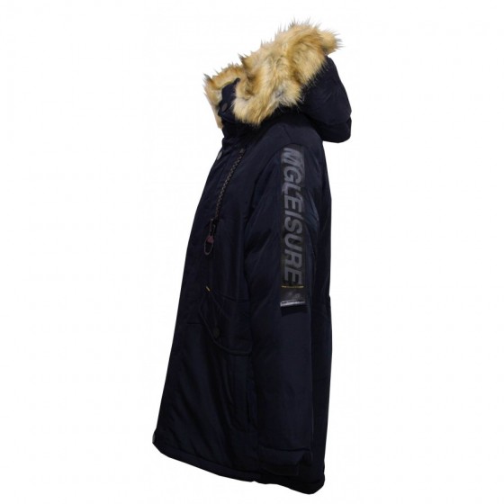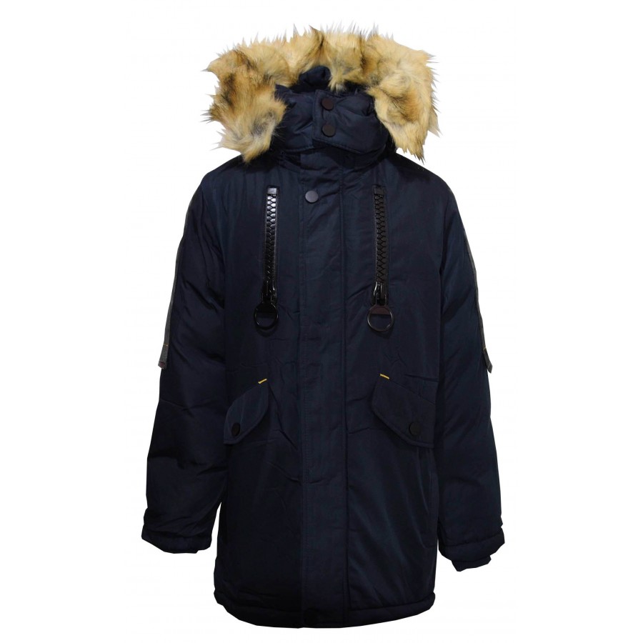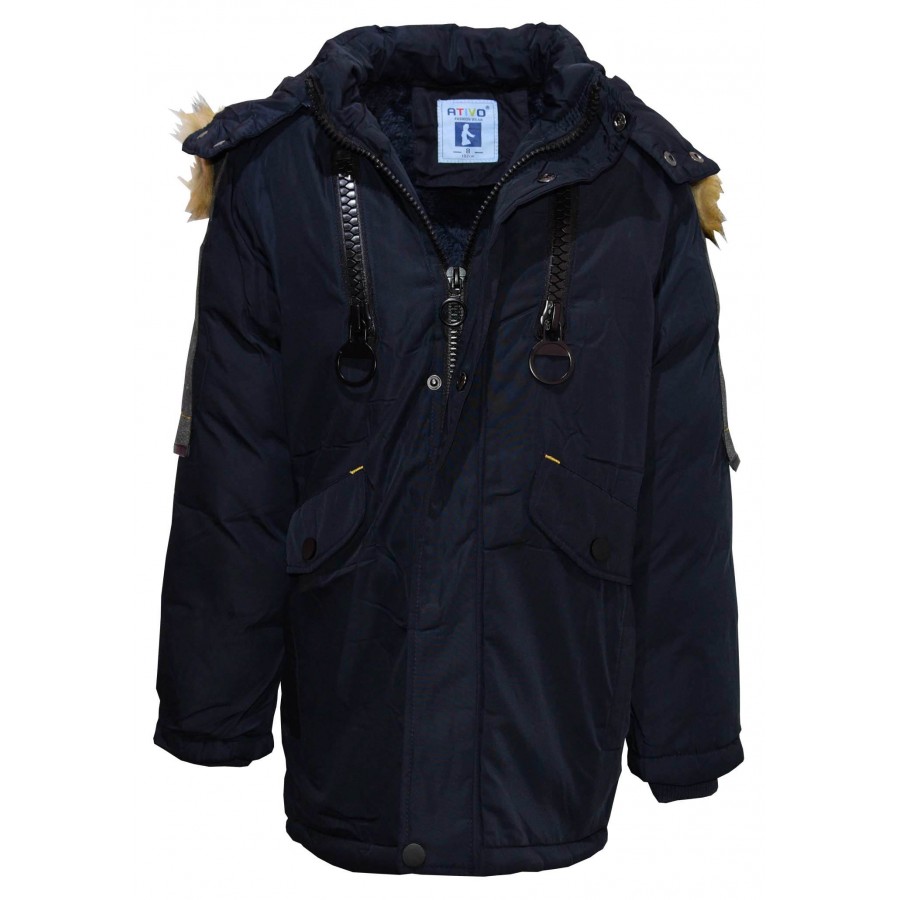 Детско зимно яке за момче в тъмносиньо Ativo. Качулката и пухът на модела се свалят. Отвътре модела е с тъмносин каракул.