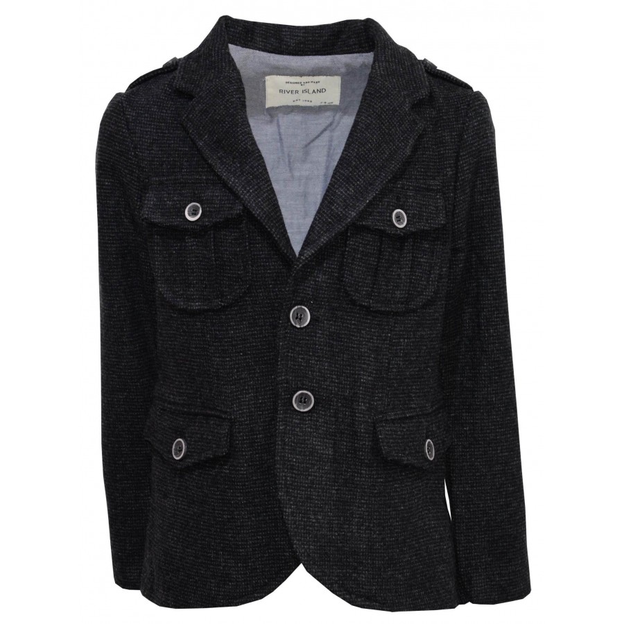 Детско сако за момче в сиво меланж. Модела е от плътна материя.