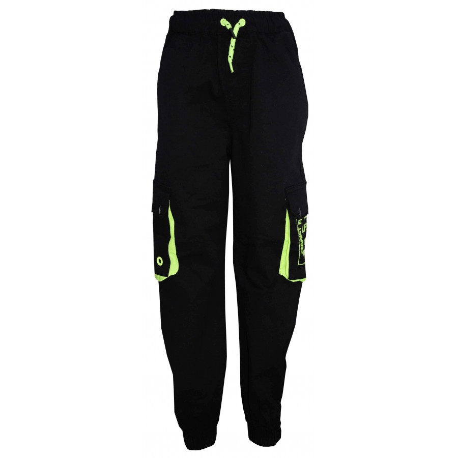 Детски спортен панталон за момче в черно със странични джобове. Модела е с ластик на талията.