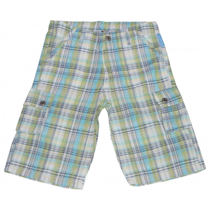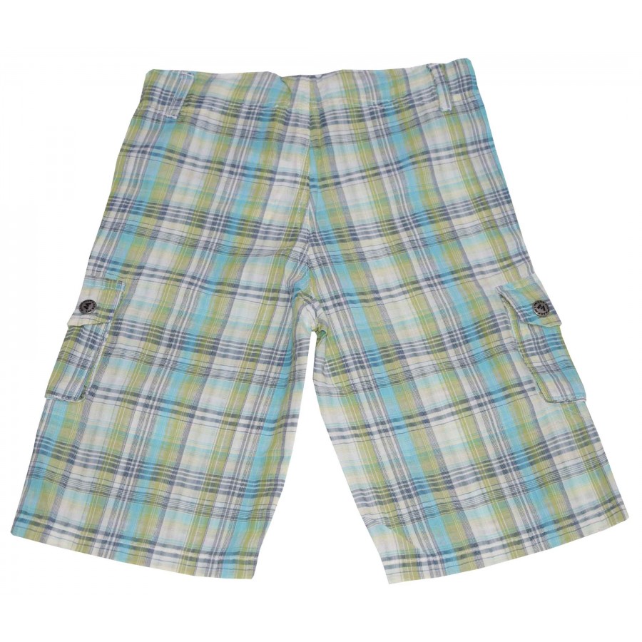 Детски бермуди за момче каре в зелено, бяло и синьо. Модела има ластик на талията за корекции.