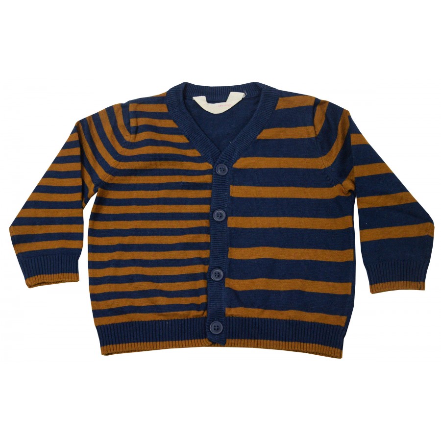 Детска жилетка от фино плетиво за момче в кафяво райе.