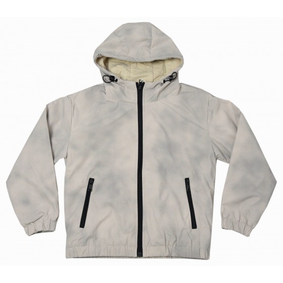 Детско преходно яке за момче в бежово с напръскан ефект в сиво.