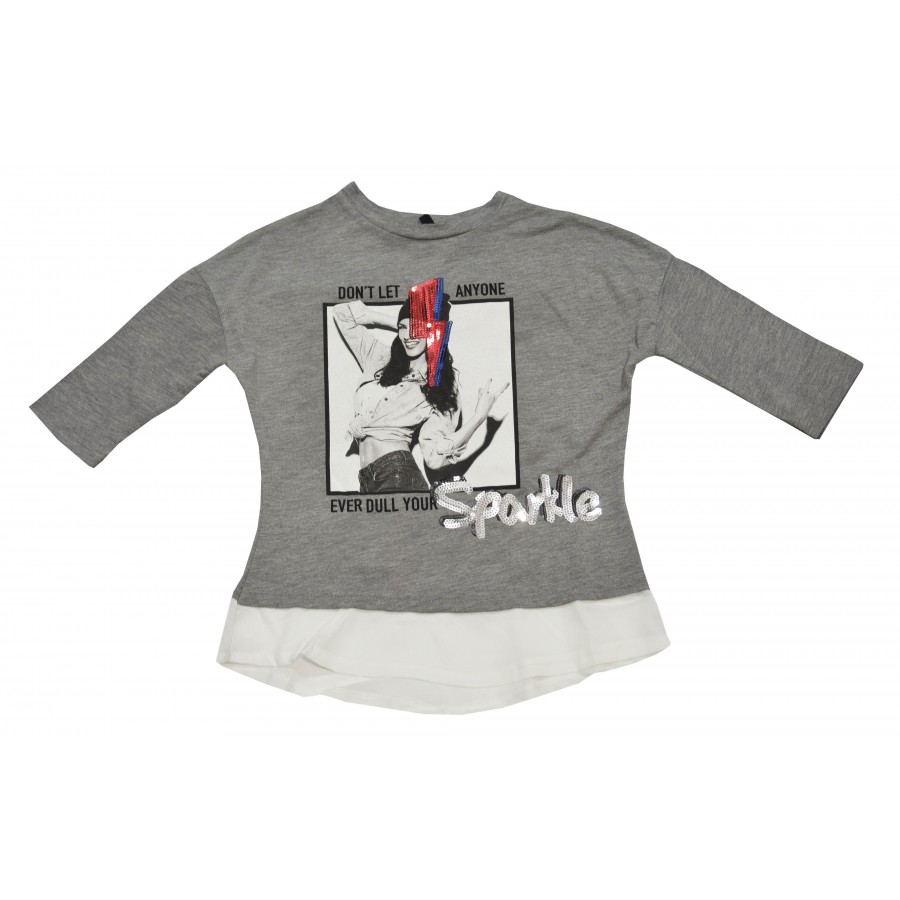 Детска блуза в сиво с 7/8 ръкав и апликация момиче.