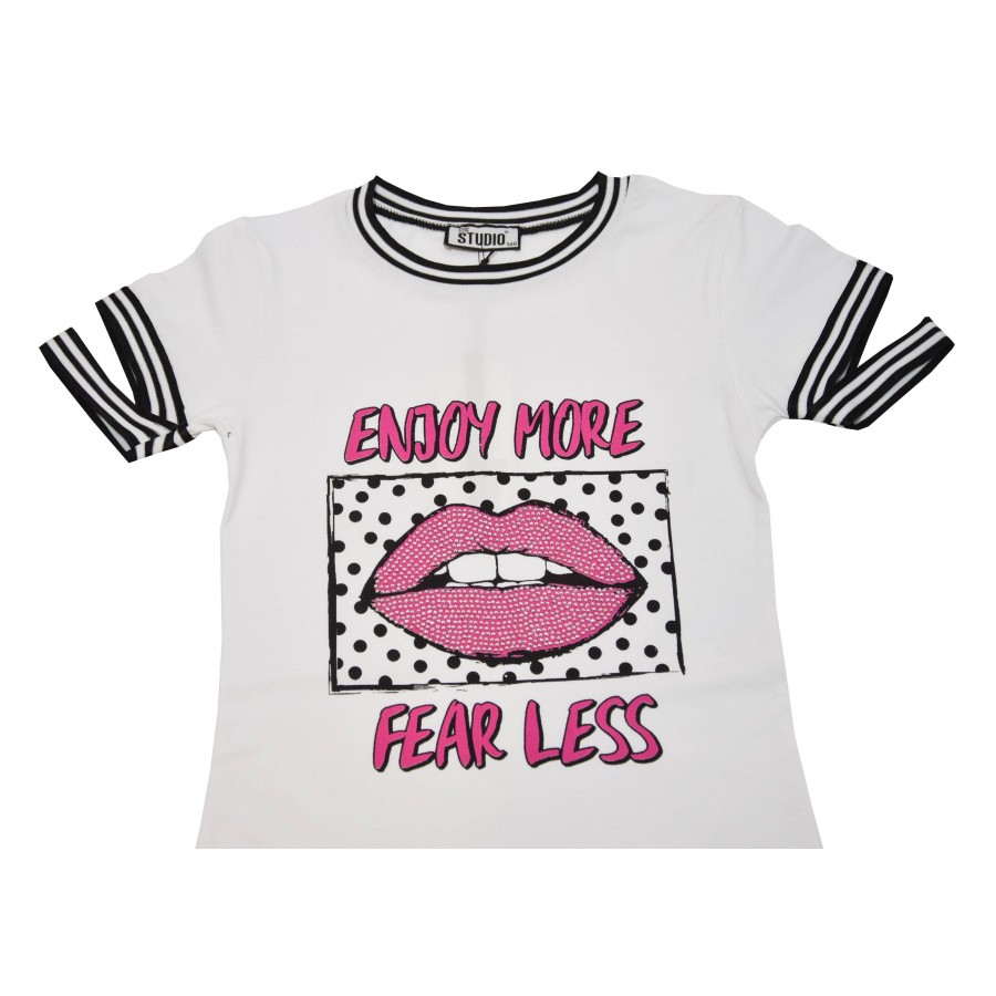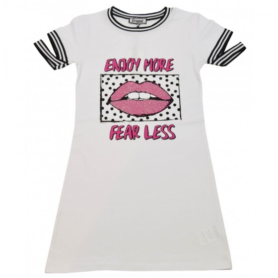 Детска рокля в бяло с рязано рамо и апликация Studio.