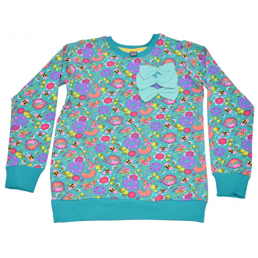 Детска блуза за момиче в мента зелено с панделки. Модела е от плътна материя.