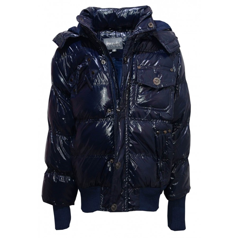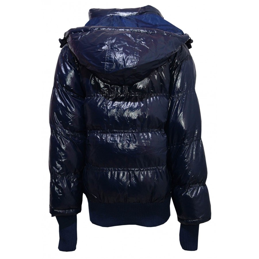 Детско яке за момиче в тъмносиньо. Качулката на модела се сваля.