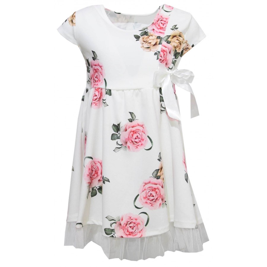 Детска рокля в екрю с принт на цветя.