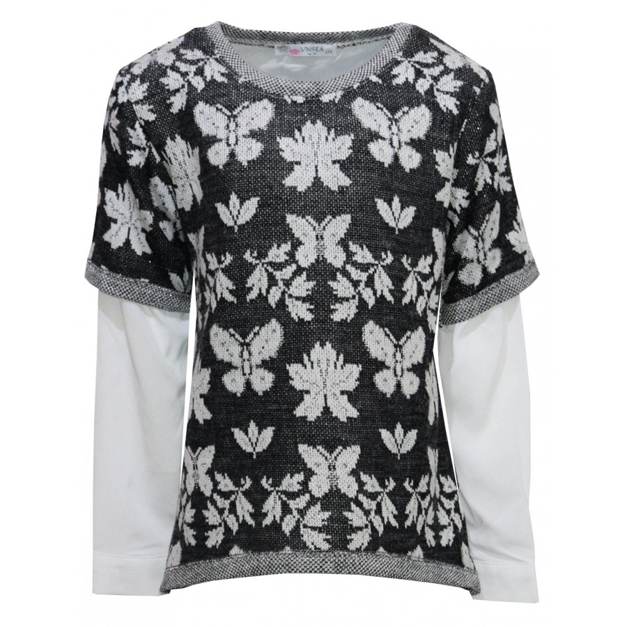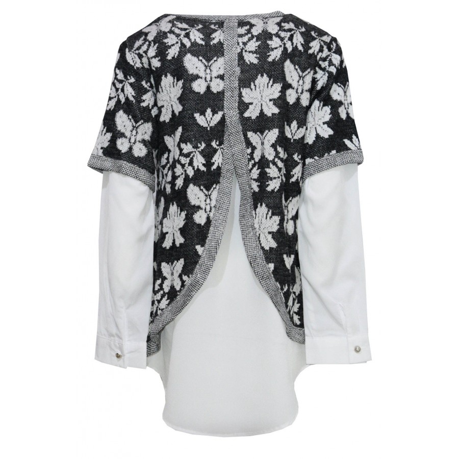 Детска туника плетиво на цветя с пришита риза на гърба и ръкавите.