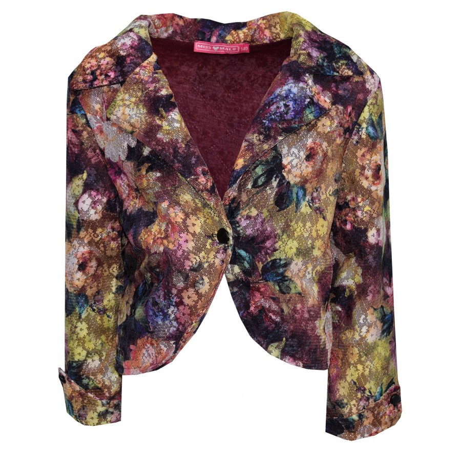 Красиво и стилно детско сако за момиче с дантела с принт на цветя, изработено от висококачествена материя. Модела е с класическа кройка, дълги ръкави и закопчаване с копчета. Лесно за поддръжка, може да се пере в пералня без риск от загуба на форма или цвят. С това сако Вашето момиче ще изглежда стилно, докато се чувства удобно през целия ден. Подходящо е както за ежедневието, така и за официални поводи.
