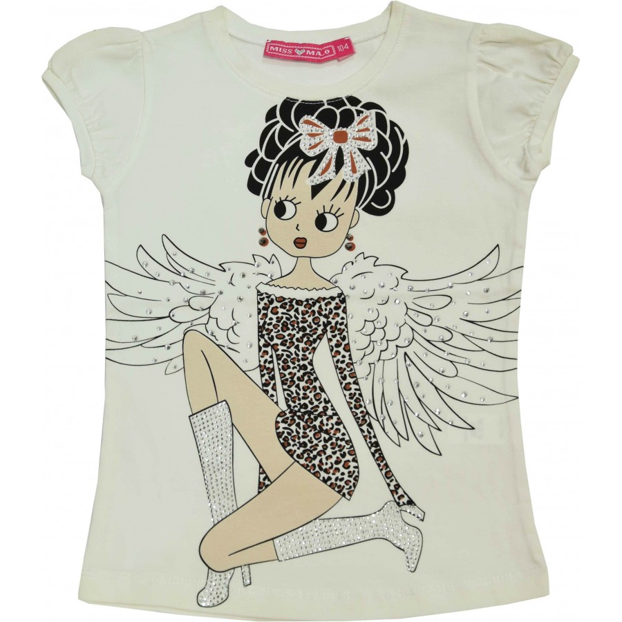 Тениска в екрю с красиво момиченце Miss & Malo. Състав: 90% памук, 10% еластан.