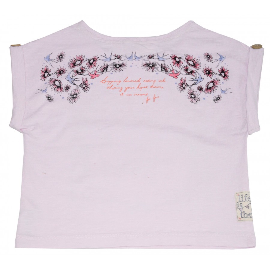 Детска тениска за момиче в розово с апликация в предната част и на гърба.