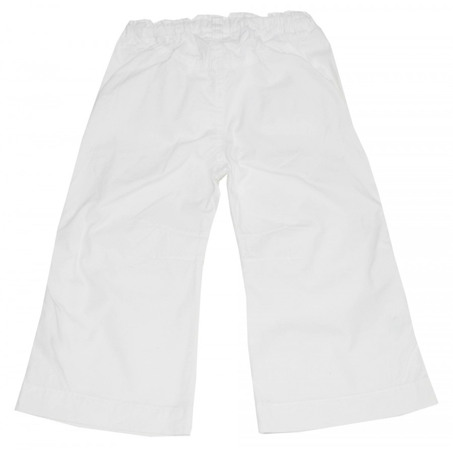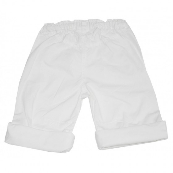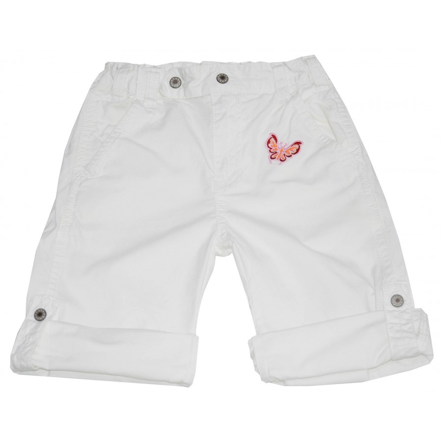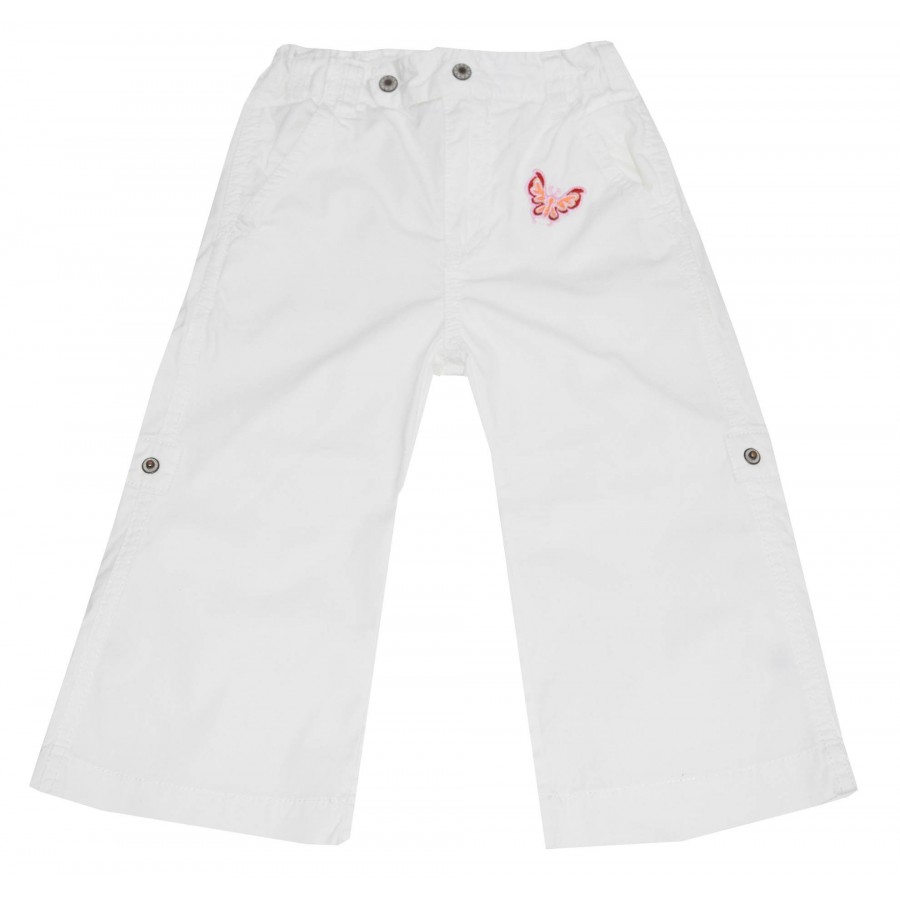Детски пролетен панталон за момиче в бяло с бродерия пепруда. Дължината се коригира и може да се носят с 3/4 дължина.