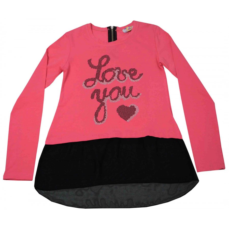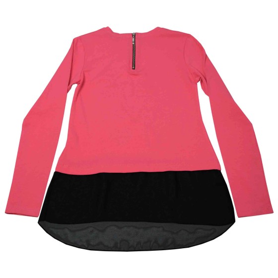 Детска туника за момиче в цикламено с черен тюл и апликация надписи.
