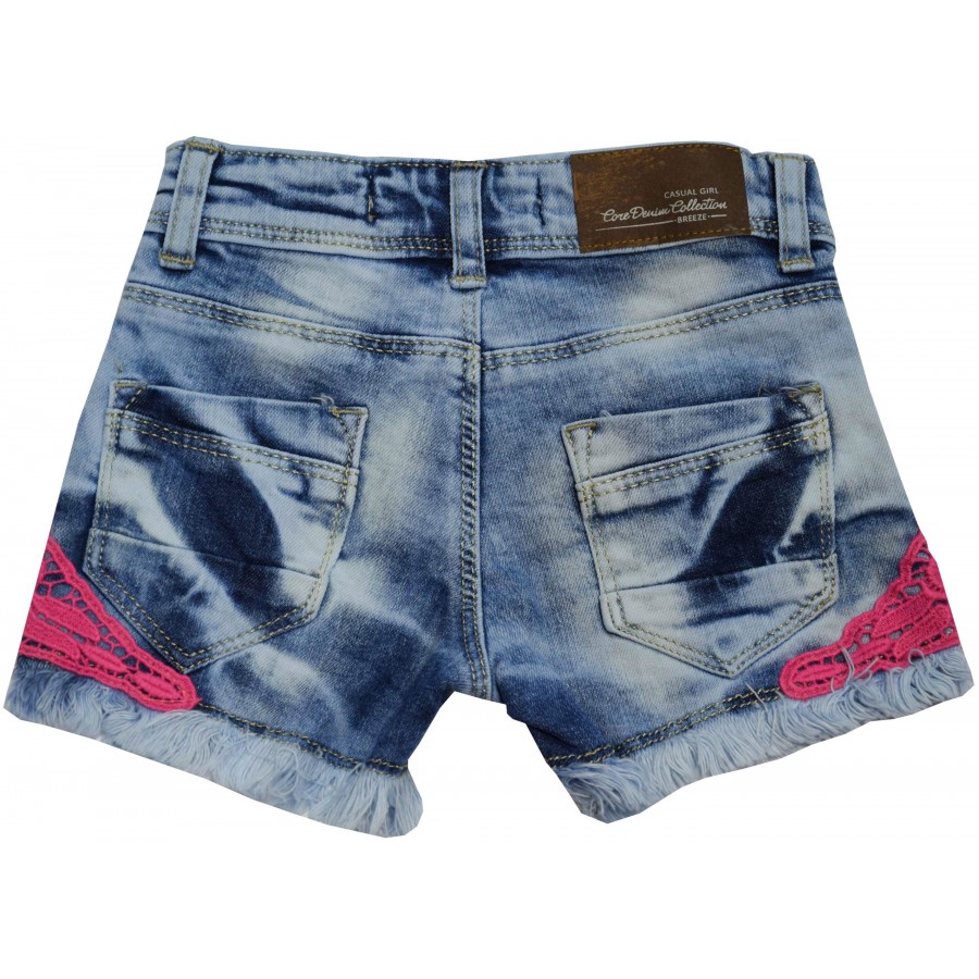 Дънкови къси панталони с цикламена дантела Breeze. Състав: 95% памук, 5% еластан.