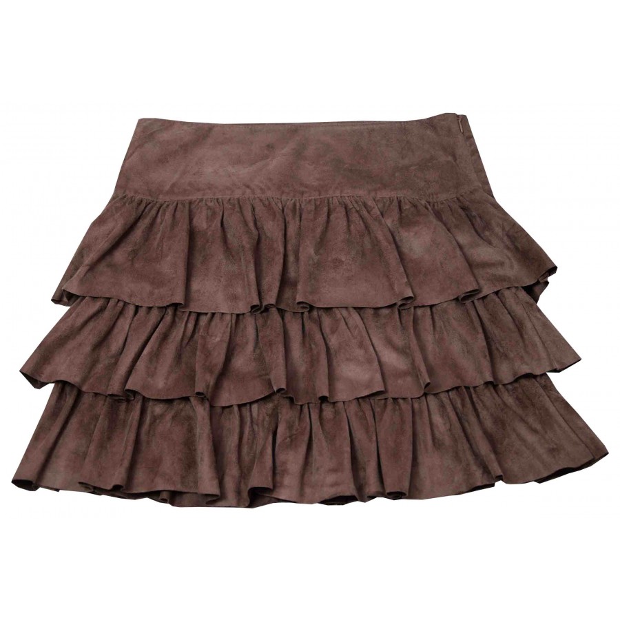 Детска пола в кафяво на волани. Модела има страничен цип за закопчаване.