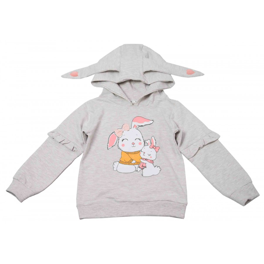 Детско худи за момиче в бежово с красива апликация и ушички на качулката.
