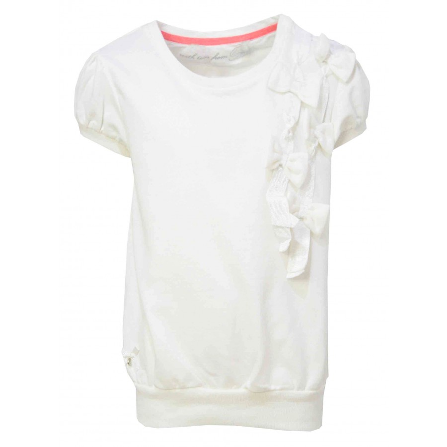 Детска блуза за момиче в екрю с красиви панделки. Модела е от мека и плътна материя.