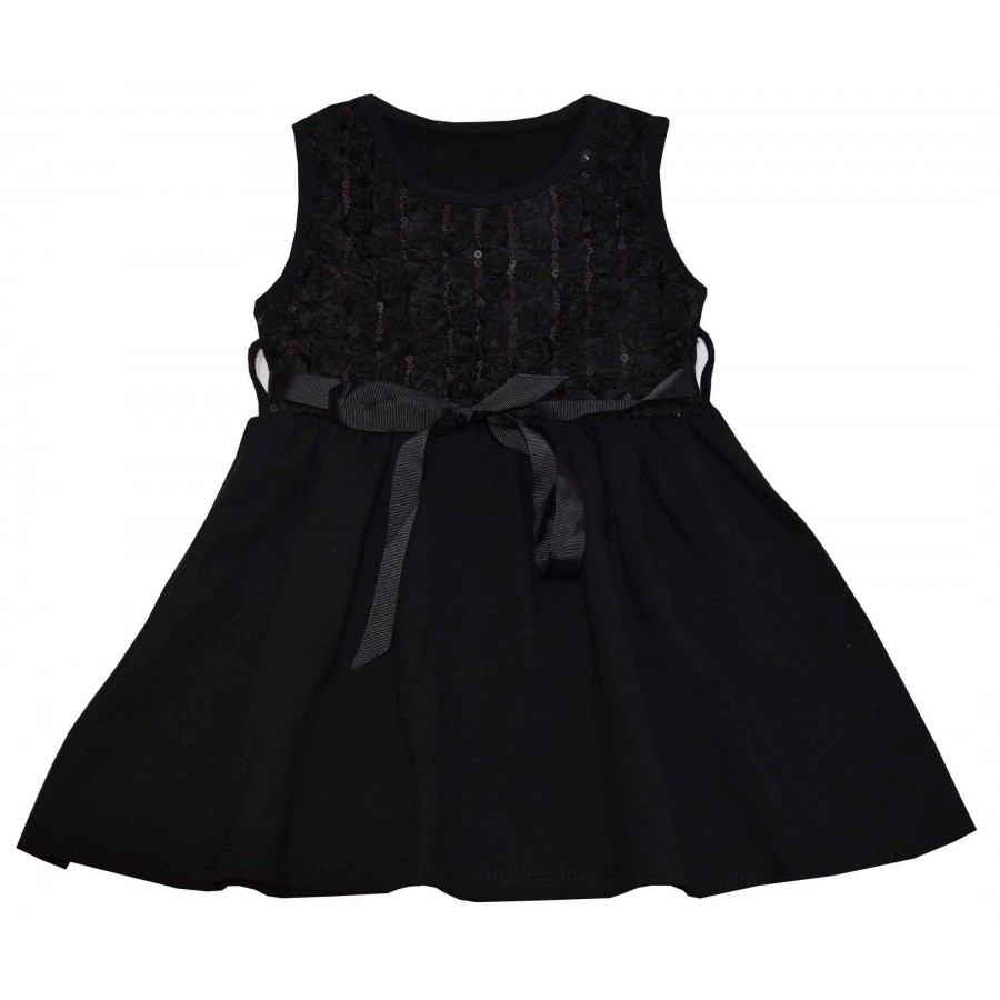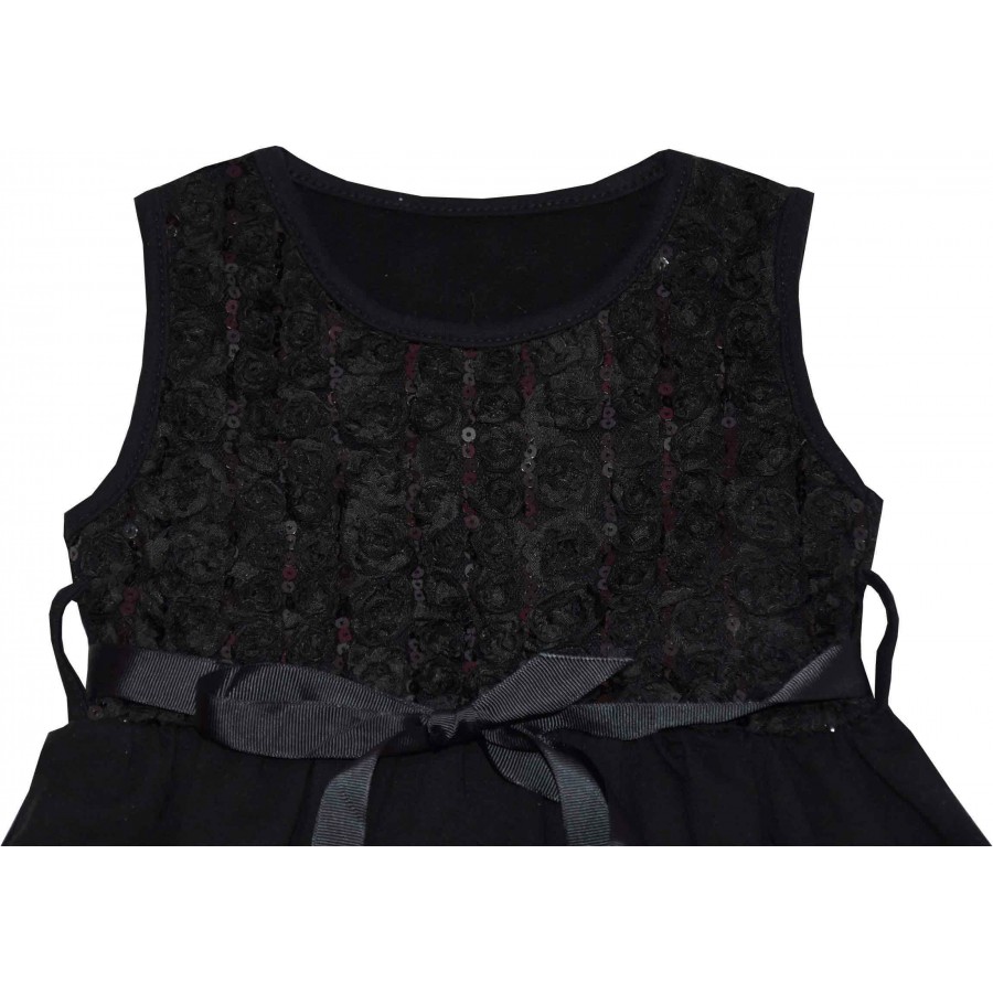 Официална детска рокля без ръкави в черно с пайети. Модела е от мека и плътна материя.
