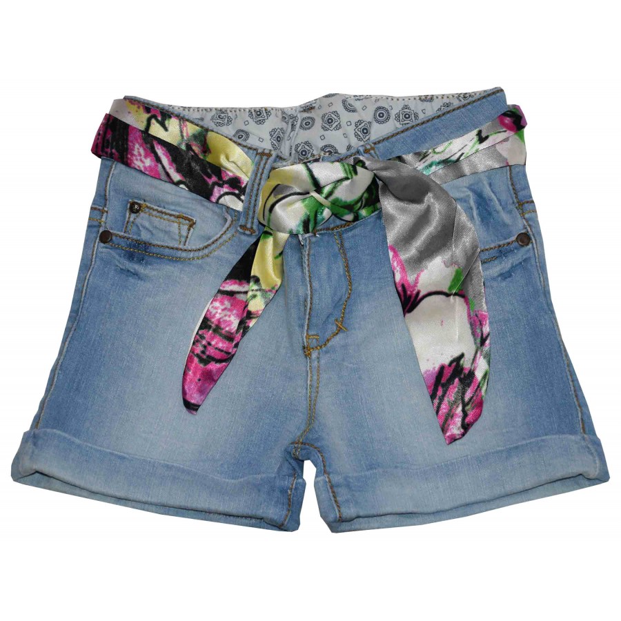 Детски дънкови къси панталони за момиче с аксесоар колан. Модела има ластик на талията за корекции.