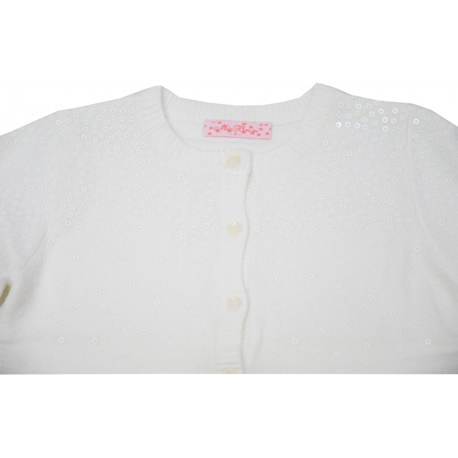 Детска жилетка за момиче фино плетиво в екрю с пайети.