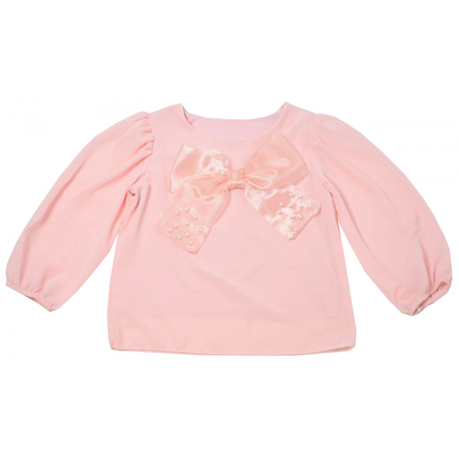 Детска блуза за момиче в розово с голяма панделка от тюл.