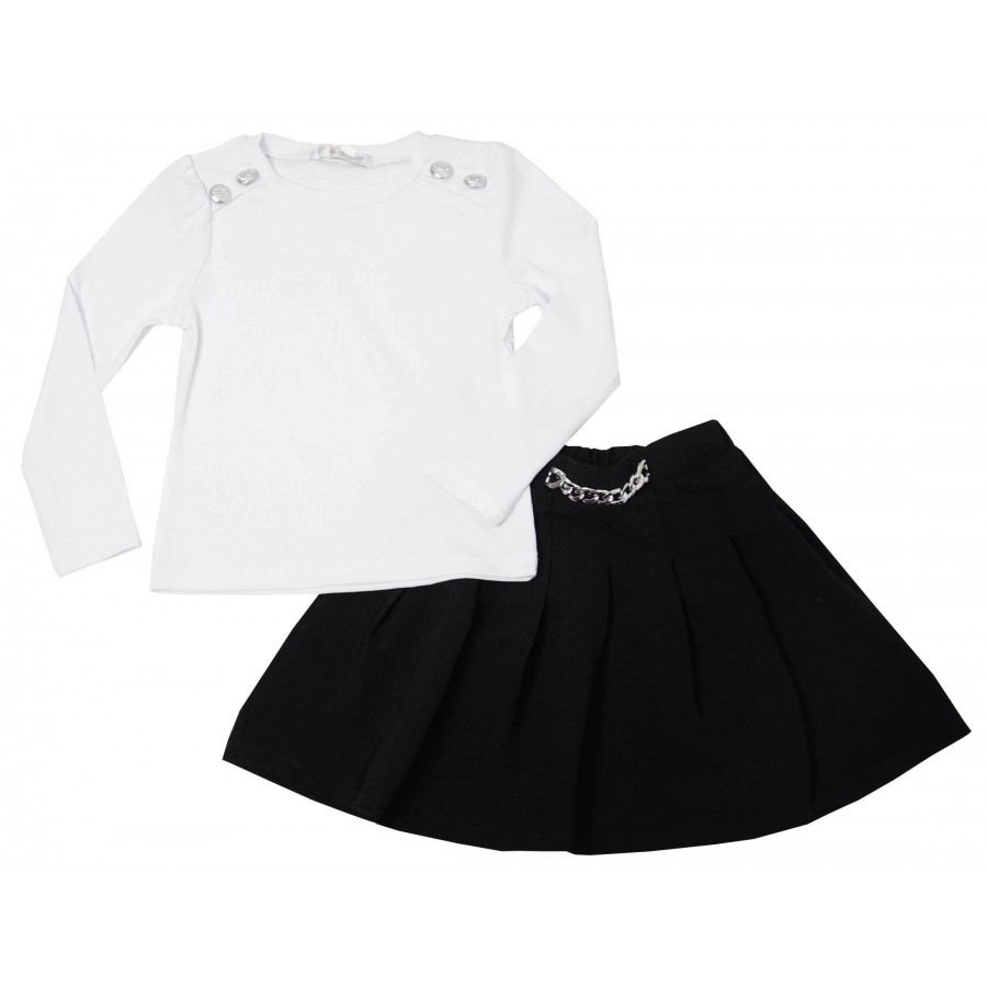 Детски комплект за момиче от две части с блуза и плисирана пола.