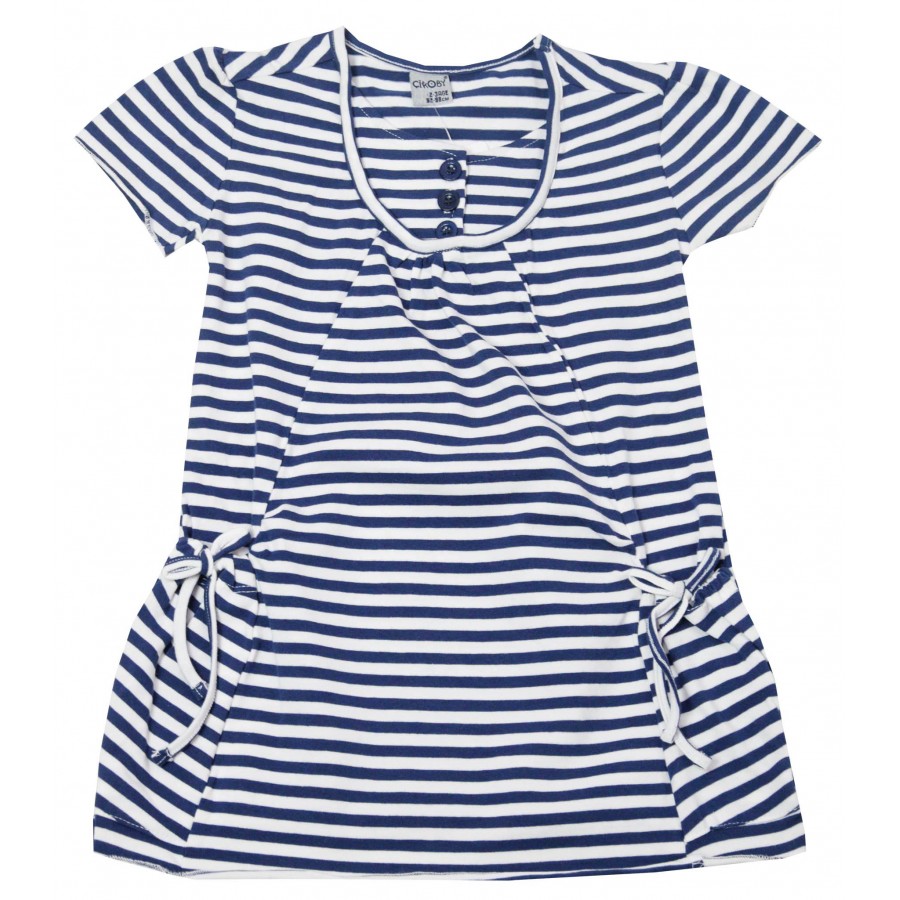 Детска спортна рокля в тъмносиньо и бяло райе.