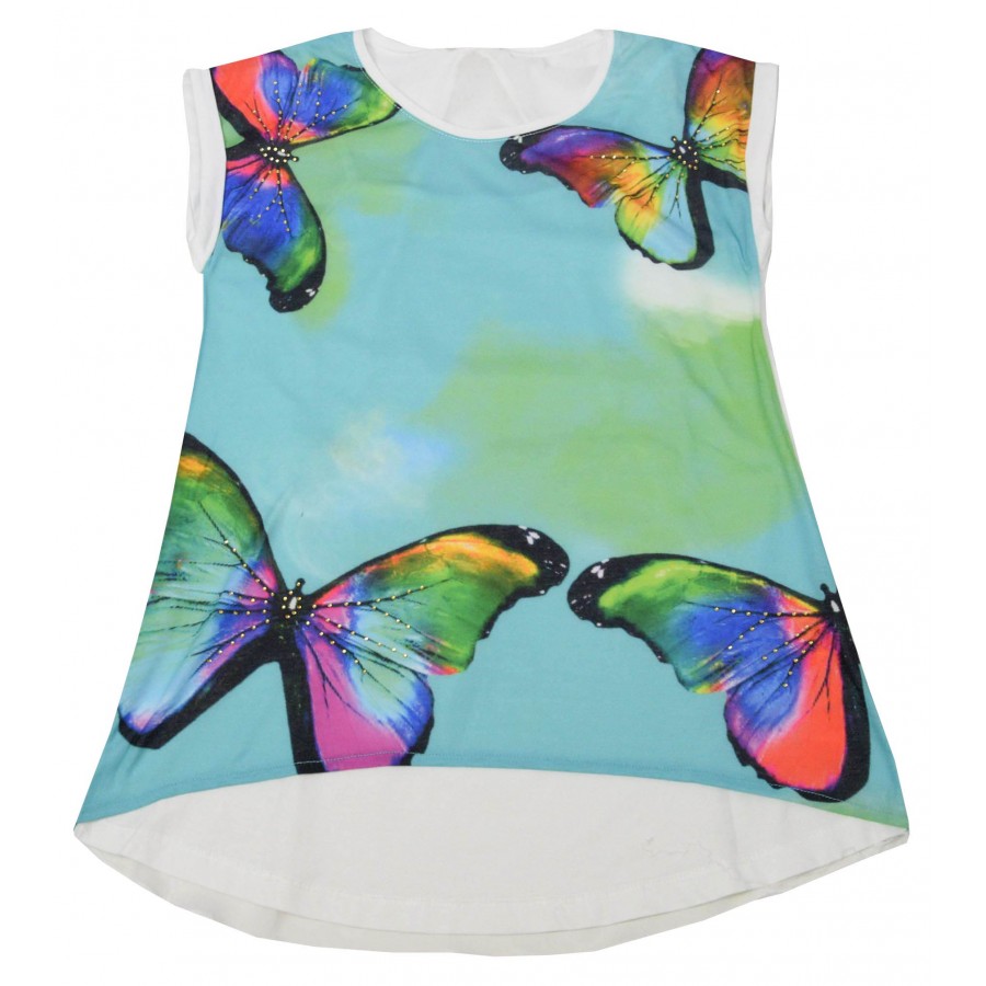 Детска туника за момиче с цветен принт в предната част. Гърба на модела е от шифон.