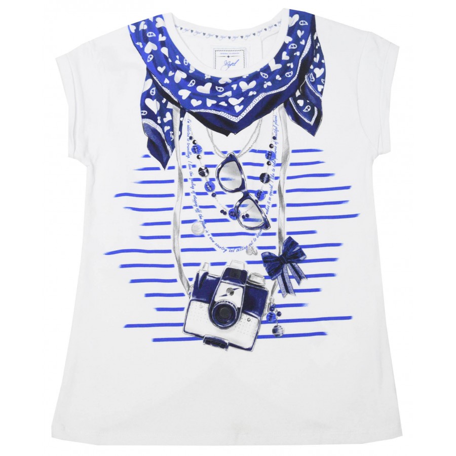 Тениска в бяло с красиви летни мотиви Mayoral. Състав: 92% памук, 8% еластан.