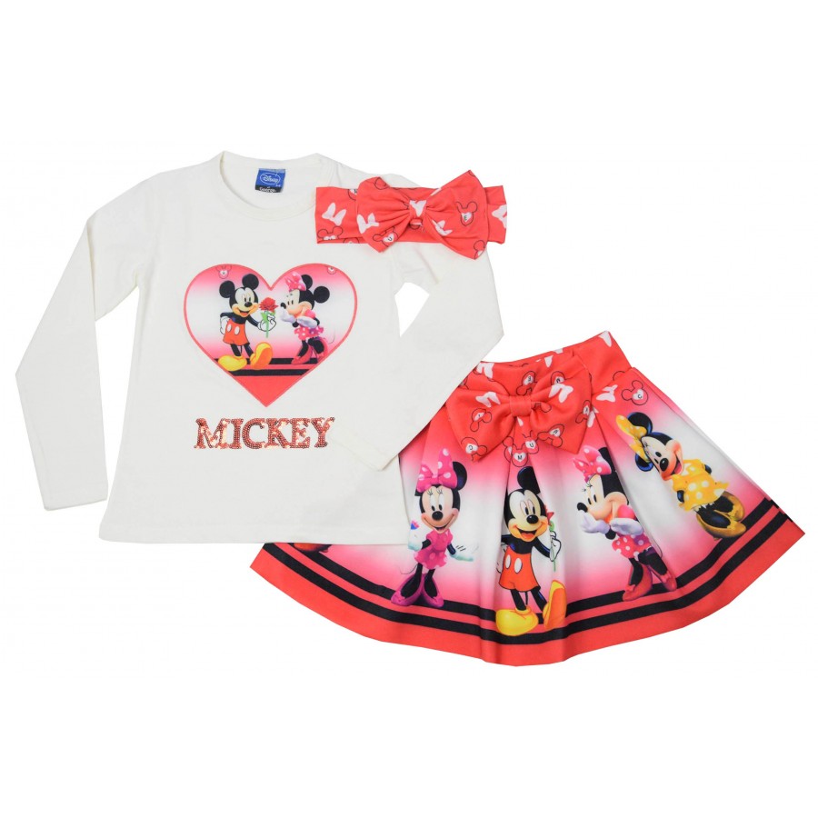 Детски комплект за момиче от три части с блуза, пола и лента за глава.