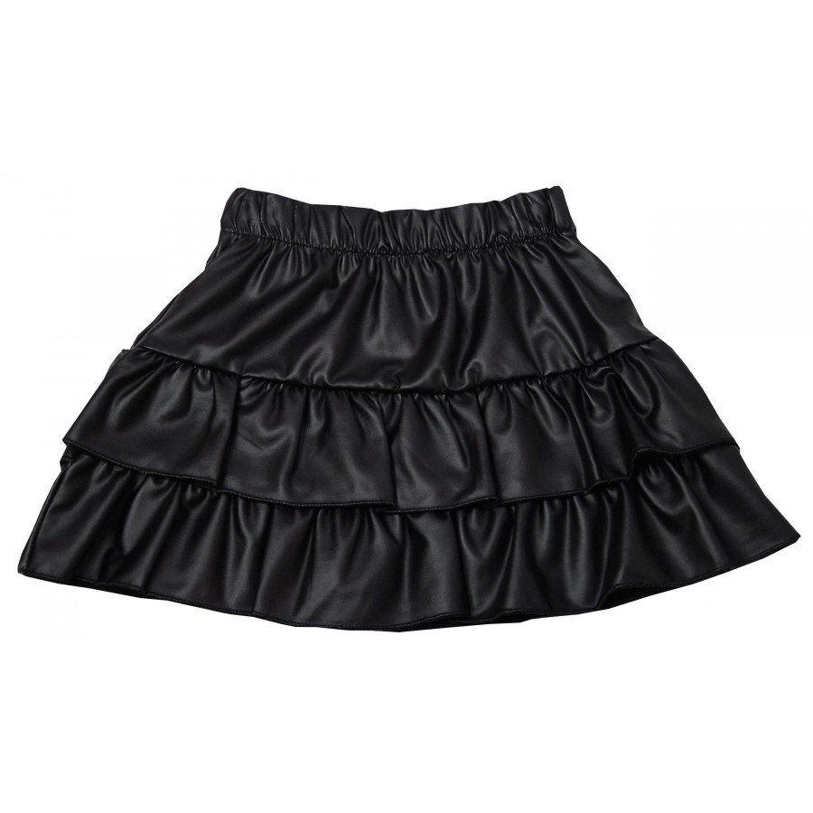 Детска кожена пола в черно на волани.