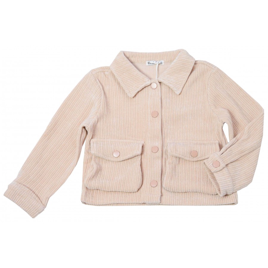 Детски комплект за момиче в бежово от две части с риза и панталон. Модела е от меко рипсено кадифе.