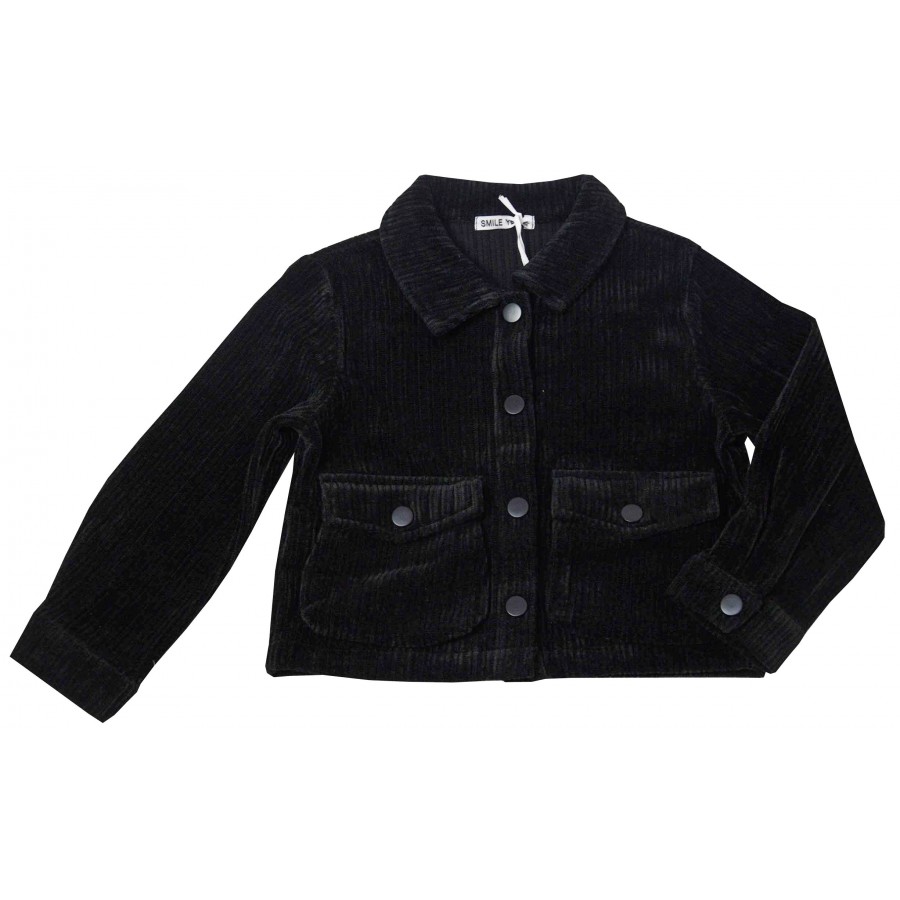 Детски комплект за момиче в черно от две части с риза и панталон. Модела е от меко рипсено кадифе.