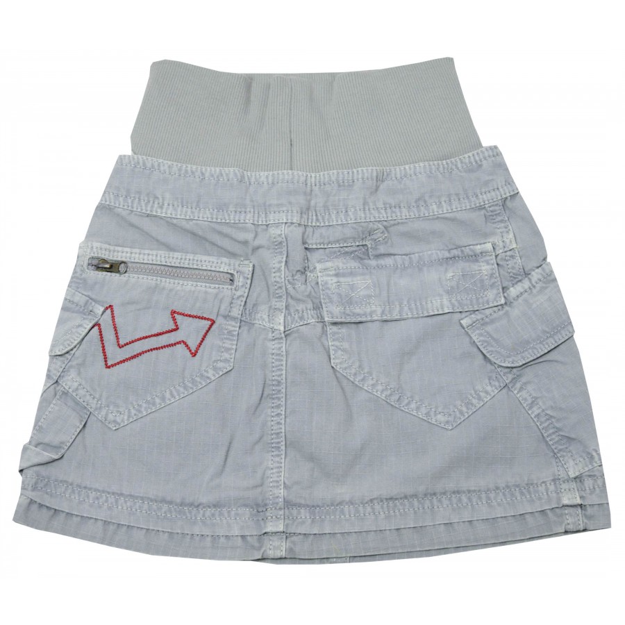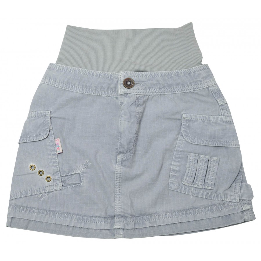 Детска пола от пран памук в сиво с джобове.