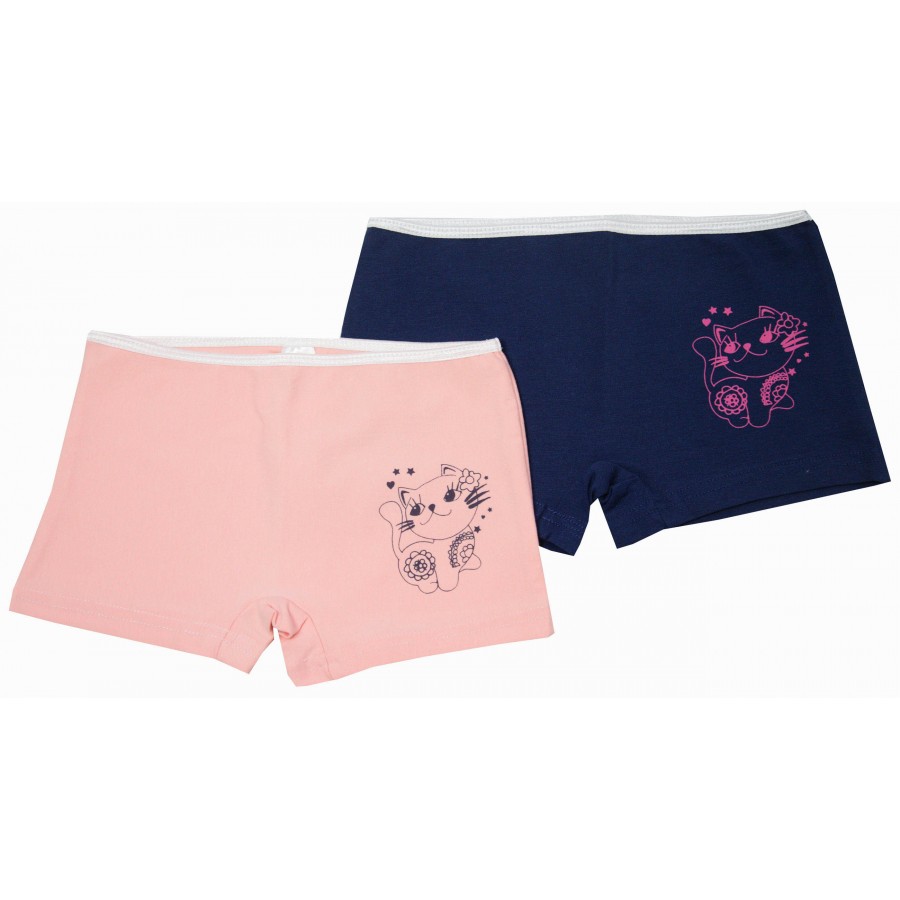Комплект от 2 броя детски боксерки за момиче в розово и тъмносиньо с апликация на котенце.