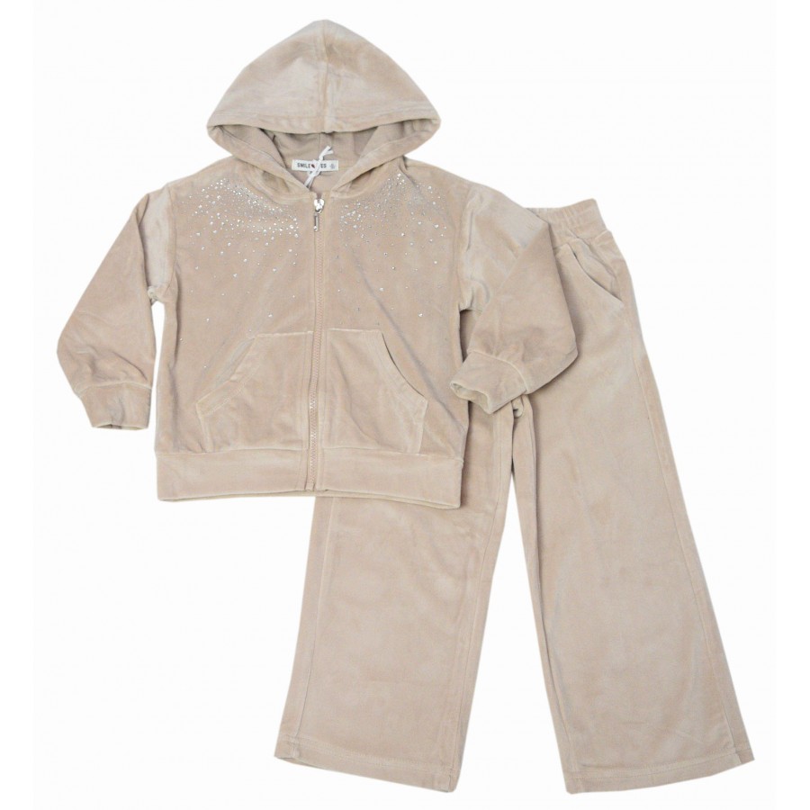 Детски плюшен комплект за момиче от две части със суитшърт и долнище в бежов цвят.