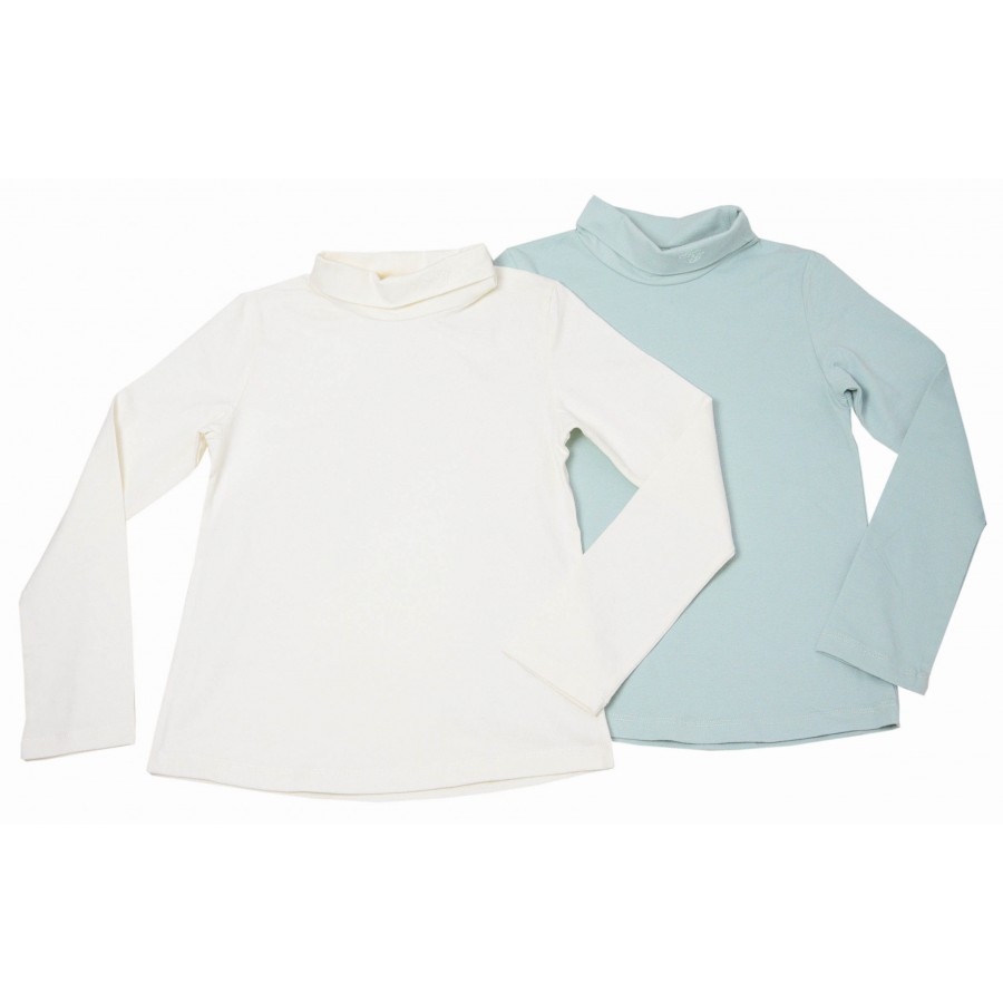 Практичен и изгоден комплект от два броя детско поло за момичета, изработени от висококачествени материи. Първия модел блуза с поло яка е изчистен в бледо зелен цвят. Втория модел е изчистен в цвят екрю. Моделите са практични и удобни за ежедневни игри и разходки.