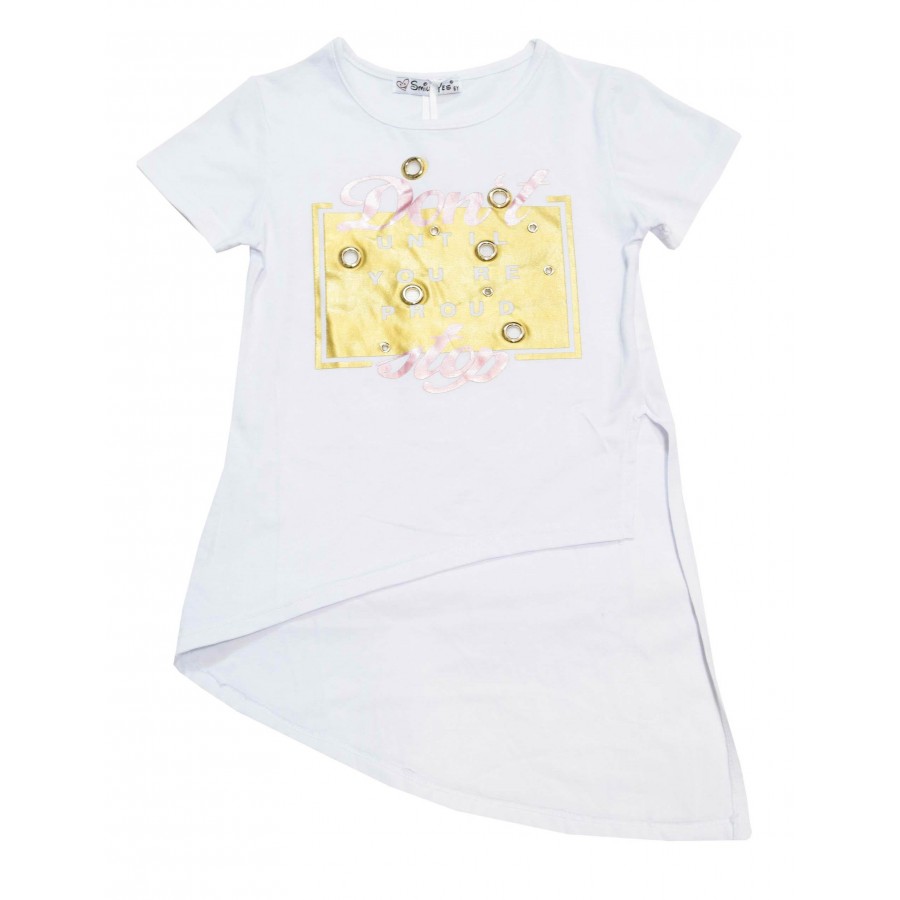 Комплект от две части: асиметрична туника в бяло и клин в черно с 7/8 дължина. Състав: 65% памук, 30% полиестер, 5% еластан.