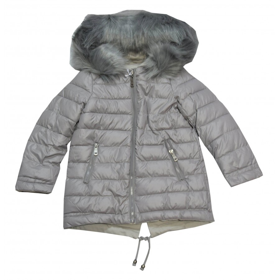 Детско яке за момиче с две лица в сиво.