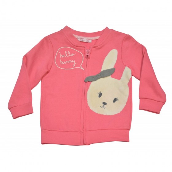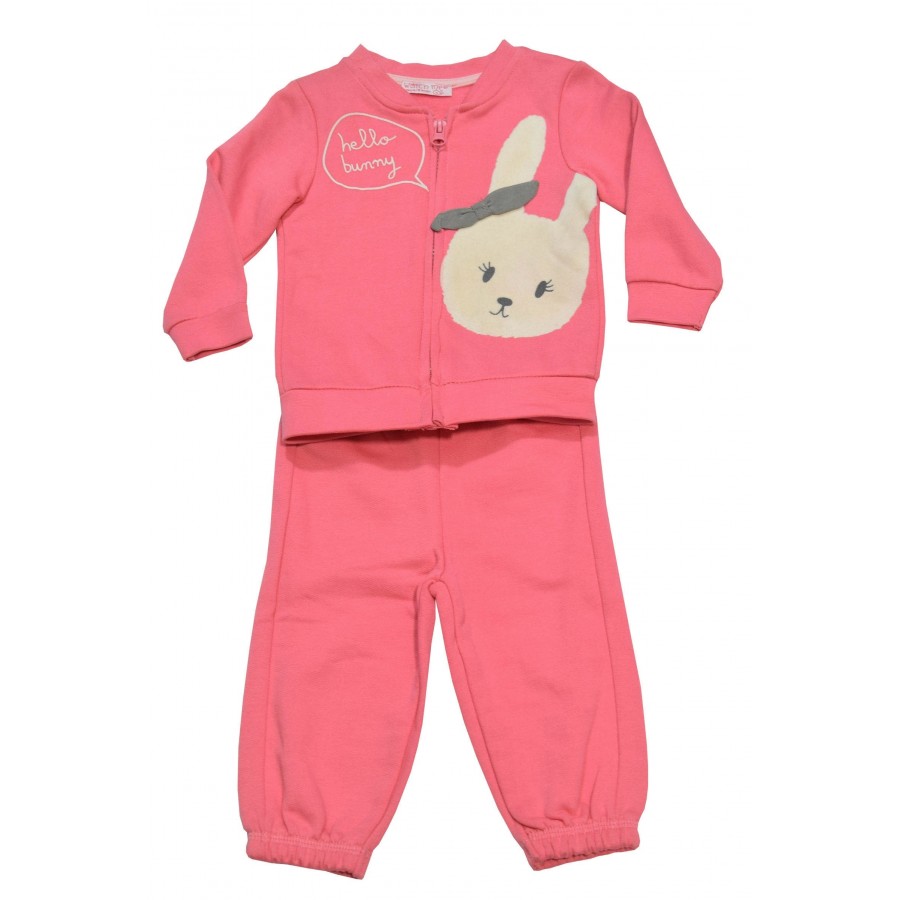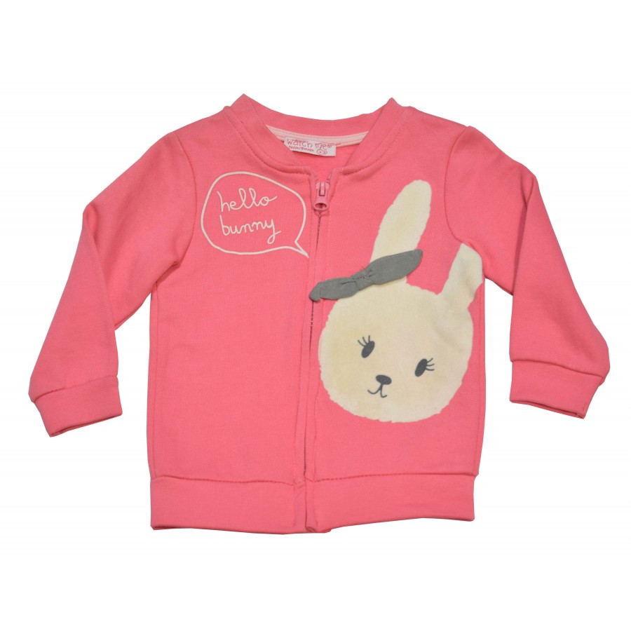 Бебешки комплект за момиче от две части с лека вата Watch me. Суитшърта е с цип без качулка с апликация зайче. Долнището е с ластик на глезените.
