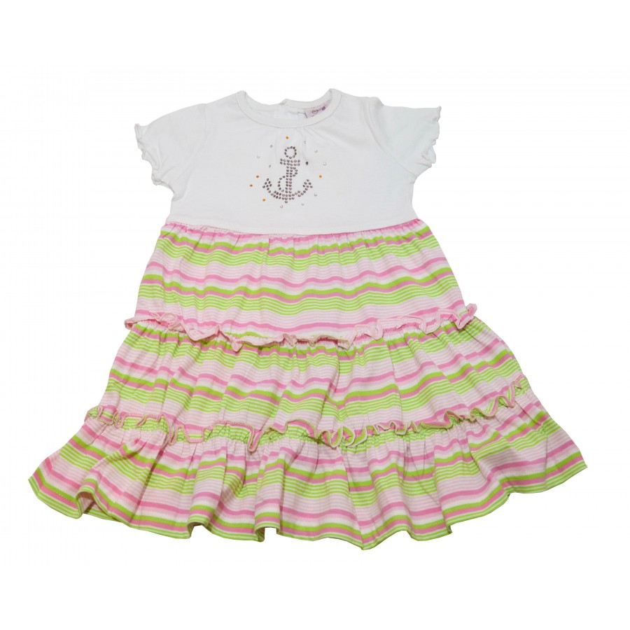 Детска рокля в бяло с котвичка от камъни и шарено райе Breeze. Модела има копчета на гърба.