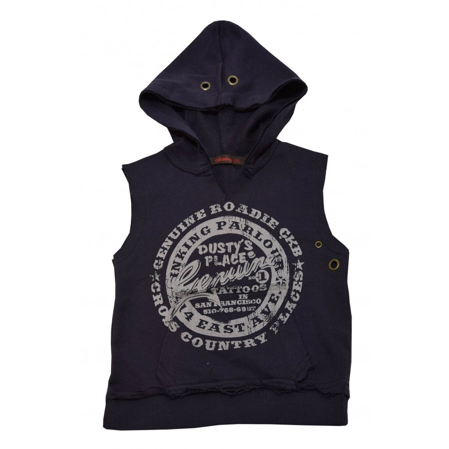 Детски елек за момче в тъмносиньо с качулка и общ джоб Cikoby.