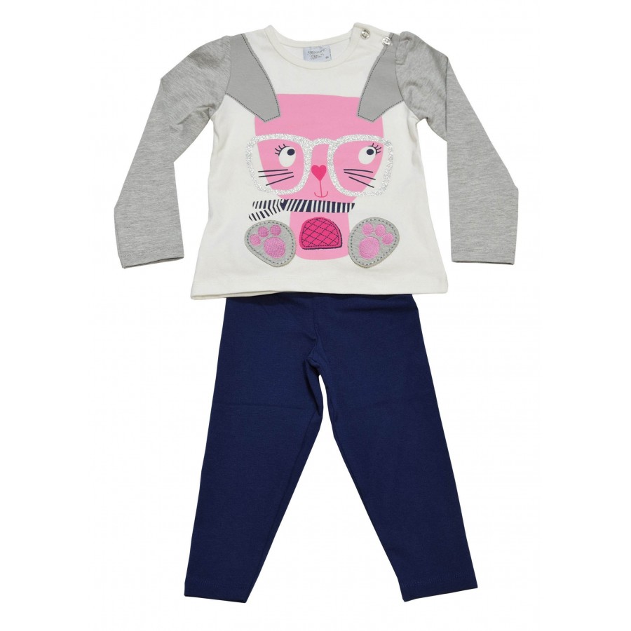 Детски комплект за момиче от две части Breeze. Туниката е в екрю с апликация. Клина е в тъмносиньо.