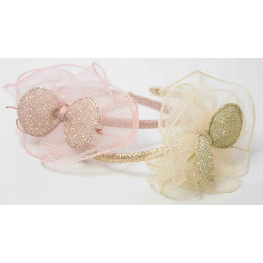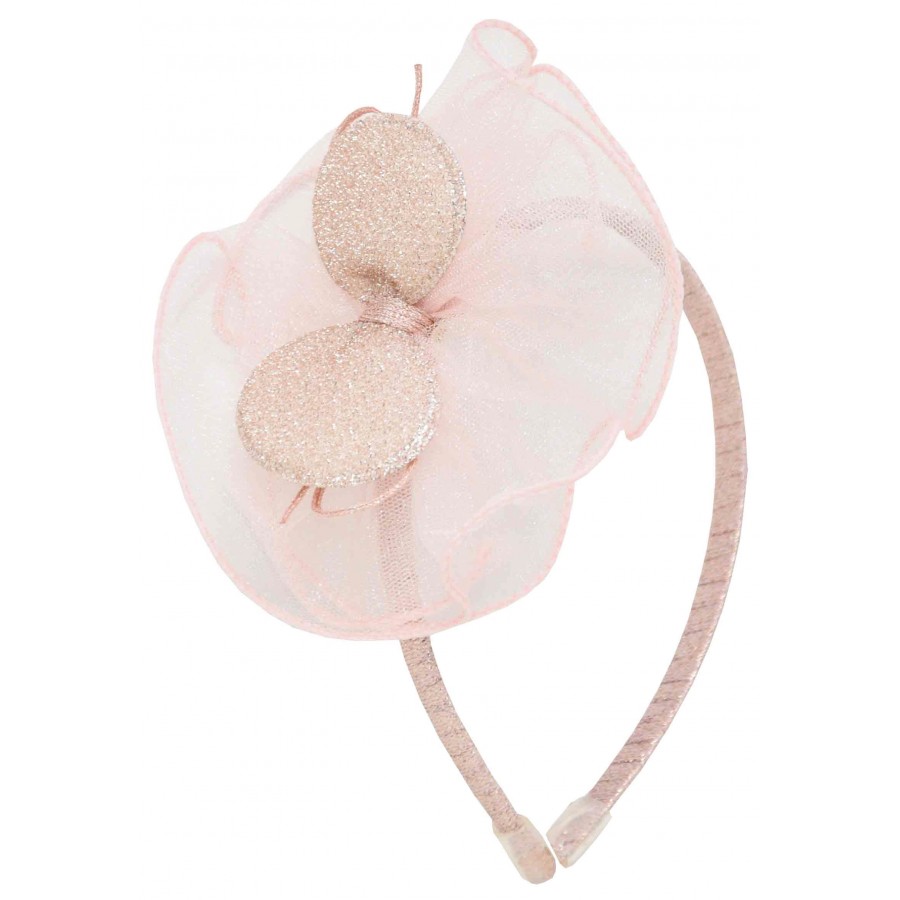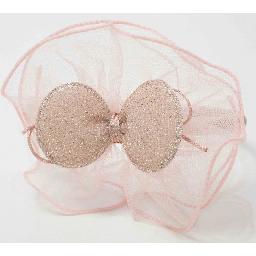 Детска диадема с панделка и тюл в розово.